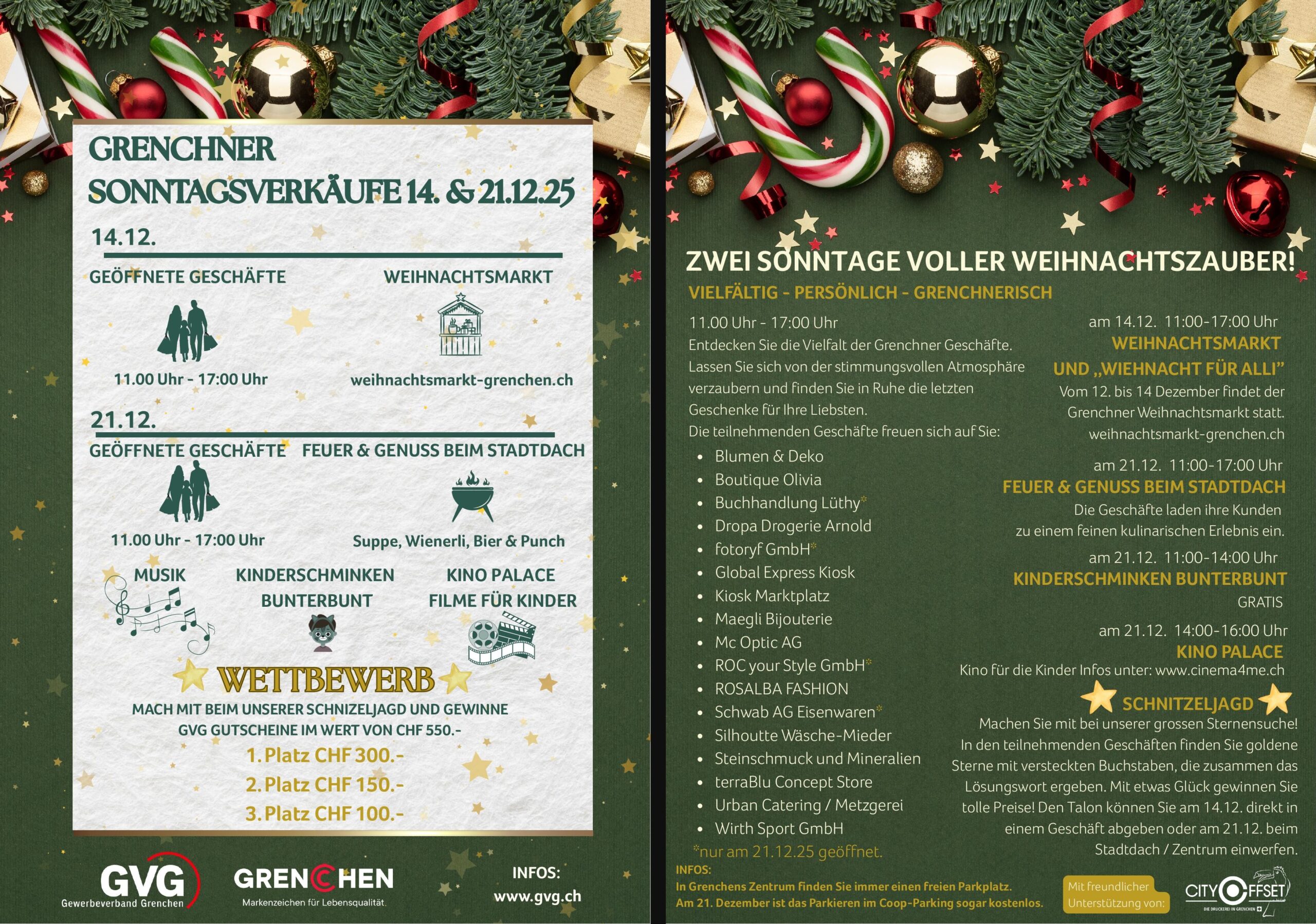 Grenchner Sonntagsverkäufe vom 14. und 21. Dezember