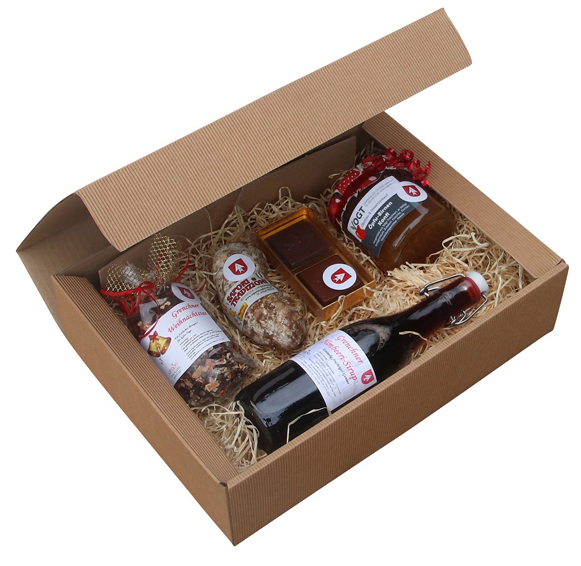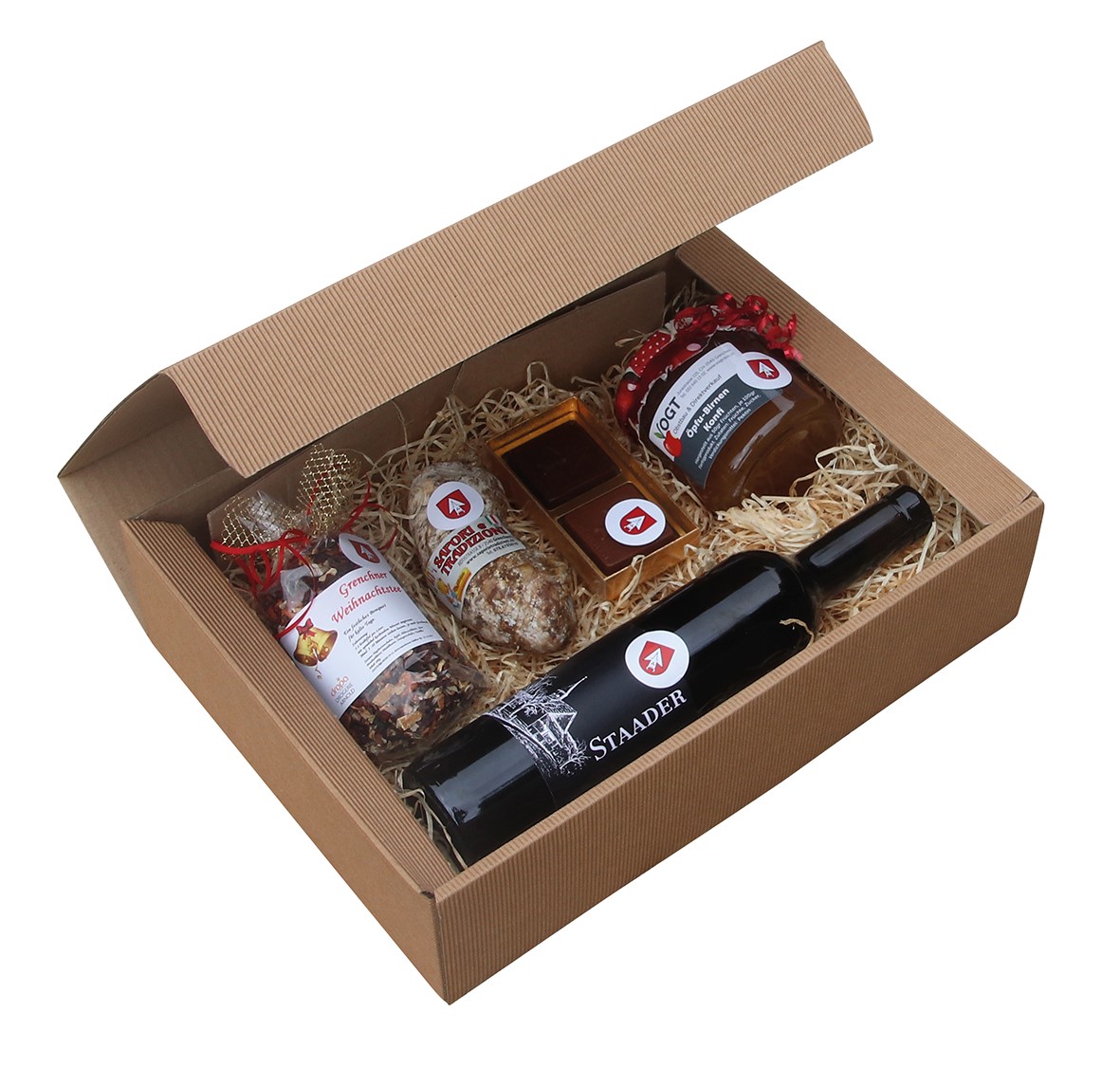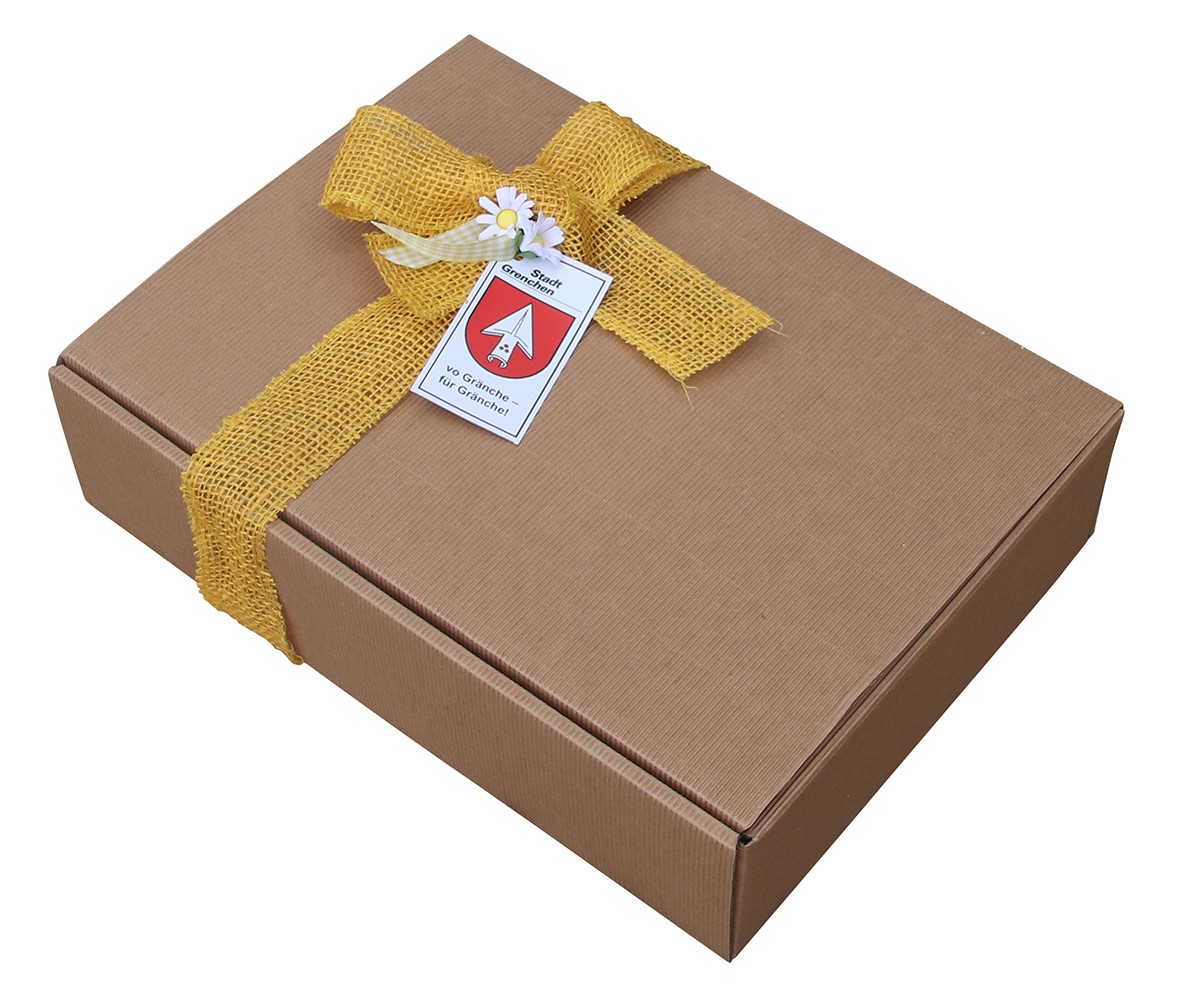 Ob als Kunden- oder privates Gastgeschenk, für Schleckmäuler und Leckermäuler: Ein Gränchner Chischtli des Gewerbeverbands ist prall gefüllt mit kulinarischen Spezialitäten aus Grenchen und Umgebung, kommt immer gut an und macht Freude! Das Chischtli enthält eine geschmackvolle Salami, ein Glas Konfitüre, eine süsse Chocolat-Versuchung und eine spezielle Kräutertee- Mischung aus der Region. Sie können zwischen der “alkoholischen Variante” ergänzt mi einem erlesenen “Staader”-Rotwein oder einer “nicht alkoholischen Variante” mit einem erfrischenden Grenchner Himbeer-Sirup auswählen.